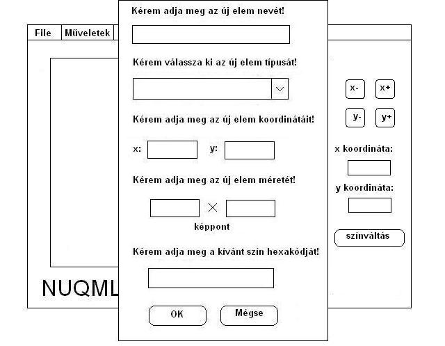 Az első mezőbe írhatja be a létrehozandó elem a nevét, majd kiválaszthatja a típusát.A megadott koordináták segítségével adhatja meg, hogy a létrehozott objektum a szerkesztőfelületen hol helyezkedjen el. A méret megadásakor meghatározhatja, hogy mekkora legyen az új objektum kiterjedése képpontokban. A kívánt szín hexakódjának segítségével határozhatja meg a létrehozandó objektum színét. Amennyiben segítségre van szüksége, hogy egy kívánt színnek mi a hexakódja, kérjük nézzen utána az interneten vagy a megfelelő szakirodalomban!